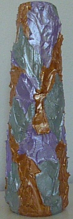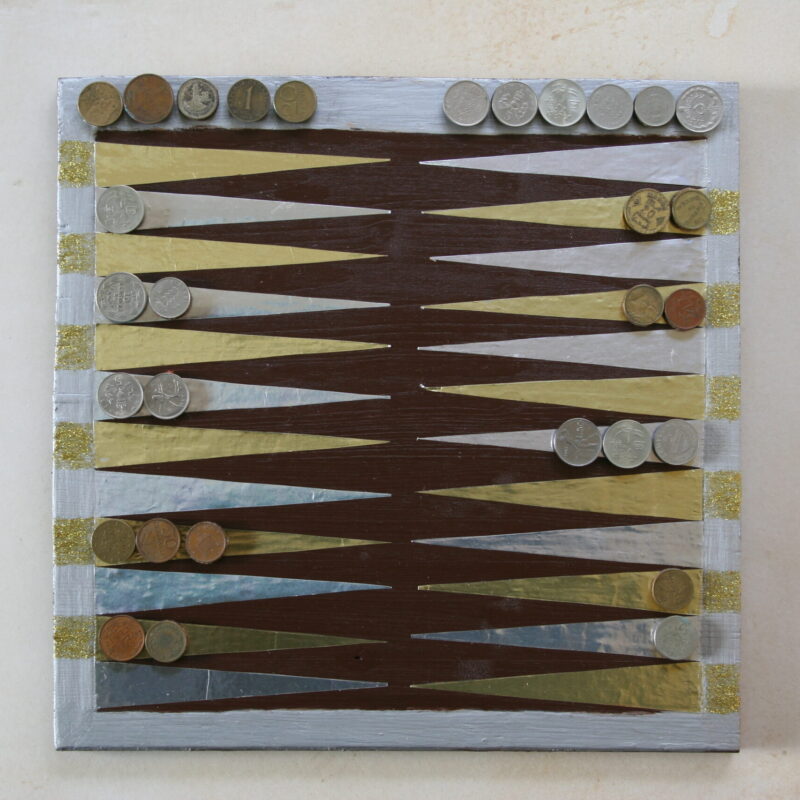 Weitere Werke Hier sehen Sie weitere Objekte. Breite 53cm,Höhe116 cm, Tiefe ca. 1,5 cm Höhe 32cm, Durchmesser 8cm Boden, 5cm Hals Höhe 35cm, Durchmesser Hals 9cm, breiteste Stelle 17cm Glitzerzeit, Durchmesser 30cm Sonnenuhr, Durchmesser 30cm Vase blaugrün, Höhe 20 cm Backgammon, Handarbeit, Spielbrett aus Holz mit int. Münzen als Spielsteine, 25x25 cm